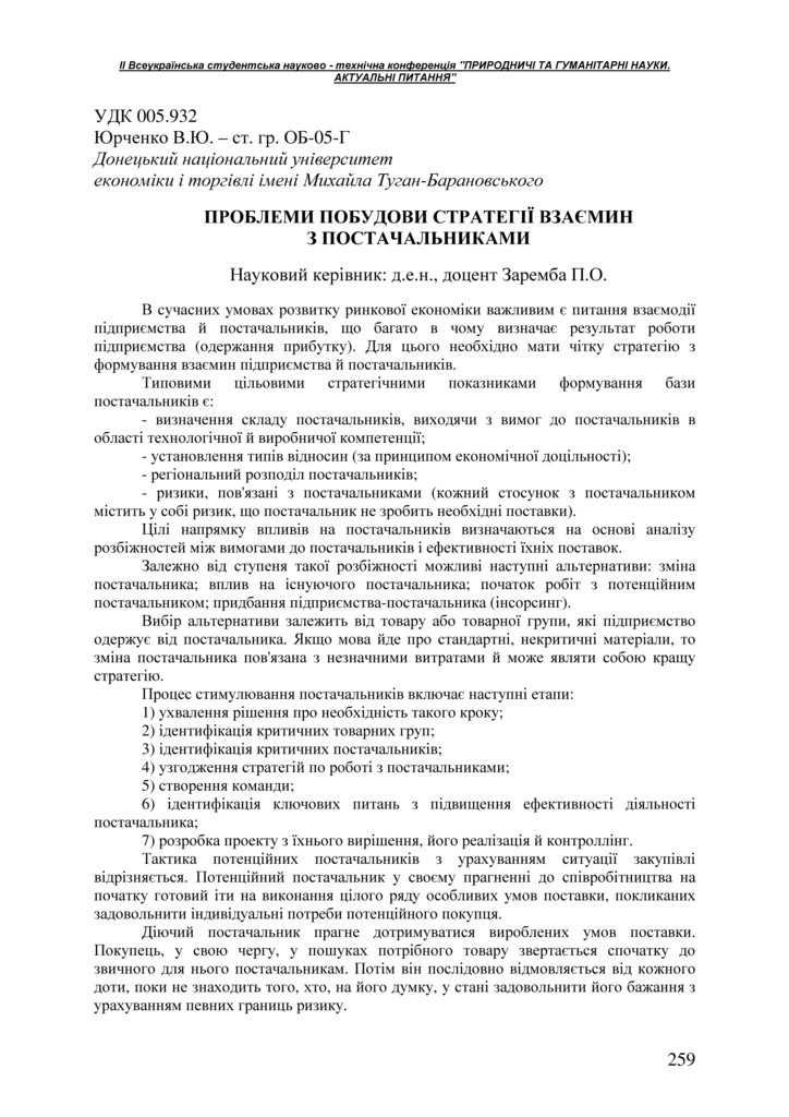 | Başlık: | Проблеми побудови стратегії взаємин з постачальниками |