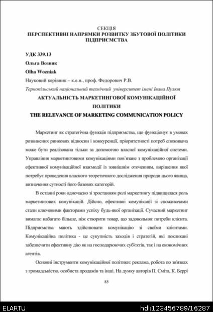 | Titel: | Актуальність маркетингової комунікаційної політики |