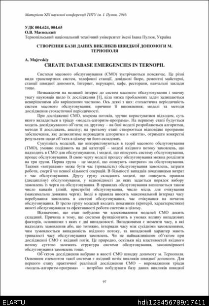 | Altres títols: | Create database emergencies in Ternopil |