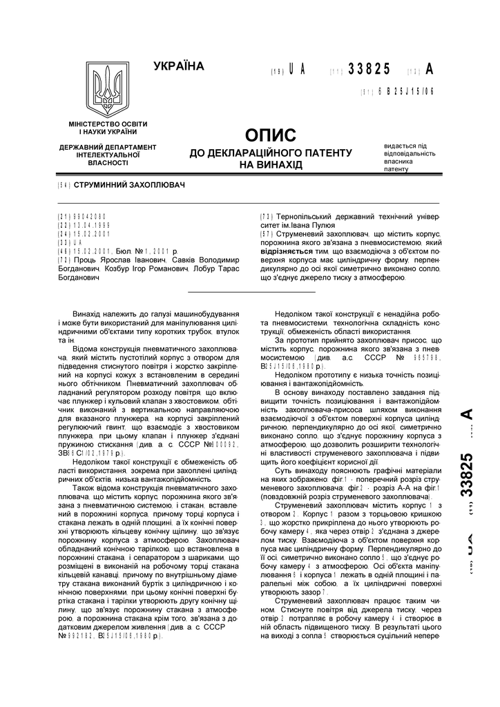 | Título : | Струминний захоплювач |