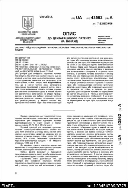 | Інші назви: | Device for piling of bar mats of transport processing systems of machines Устройство для сборки прутковых полотен транспортно-технологических систем машин |