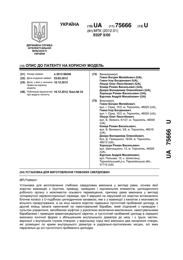 | Власник авторського права: | ® Дзюра Володимир Олексійович, Гевко Ігор Богданович, Буртник Андрій Михайлович, Комар Роман Васильович, Ляшук Олег Леонтійович, Гевко Богдан Матвійович, Хорошун Роман Васильович |