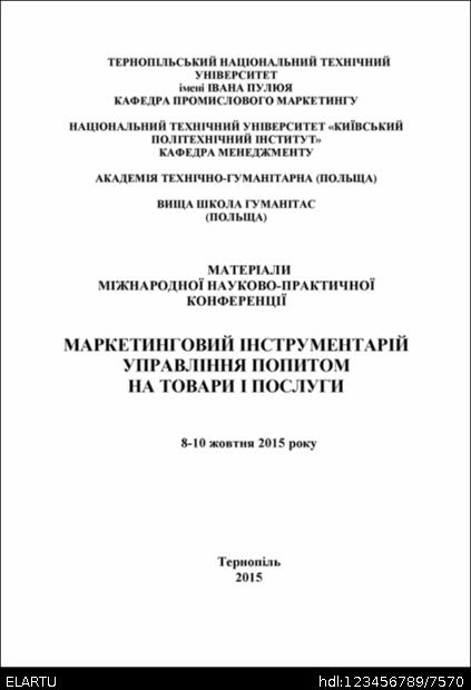 | Koleksiyonlarda Görünür: | Конференція „Маркетинговий інструментарій управління попитом на товари та послуги“ (2015) |