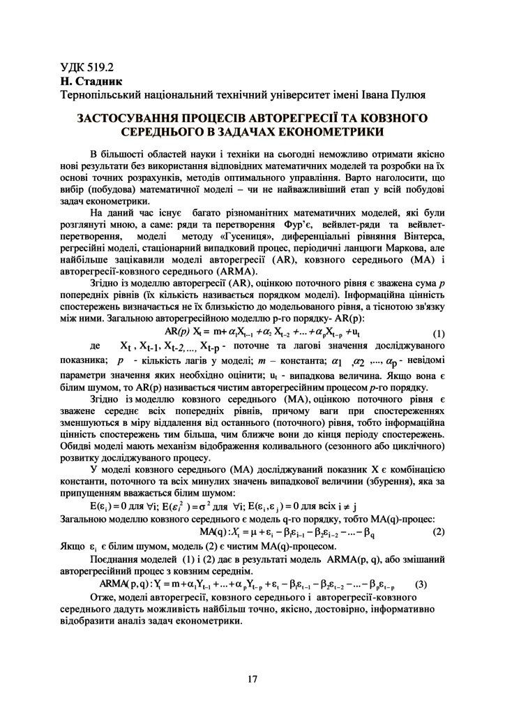 | Títol: | Застосування процесів авторегресії та ковзного середнього в задачах економетрики |