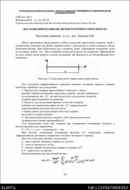 | Bibliographic description: | Zborivskyi V. (2013) Doslidzhennia kolyvan shchitky rotornoho prosiiuvacha. Materials of Ⅵ the All-Ukrainian Student Science Conference "Natural and Human Sciences. Current issues." (Tern., 25-26 March 2013), Volume 1, pp. 14 [in Ukrainian]. |