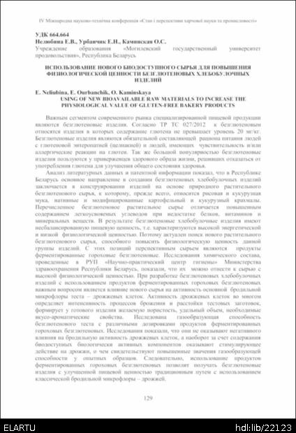 | Titre: | Использование нового биодоступного сырья для повышения физиологической ценности безглютеновых хлебобулочных изделий |