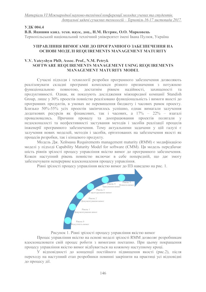 | Título: | Управління вимогами до програмного забезпечення на основі моделі Requirements management maturity |