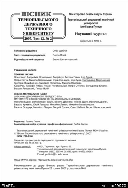 | Is part of: | Вісник Тернопільського державного технічного університету, 2 (12), 2007 Scientific Journal of the Ternopil State Technical University, 2 (12), 2007 |