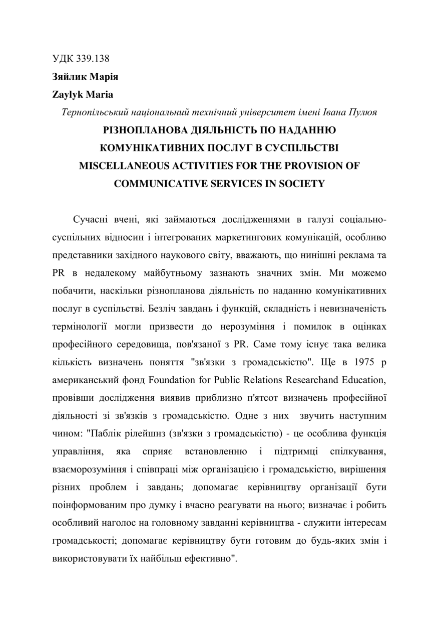 | Başlık: | Різнопланова діяльність по наданню комунікативних послуг в суспільстві |