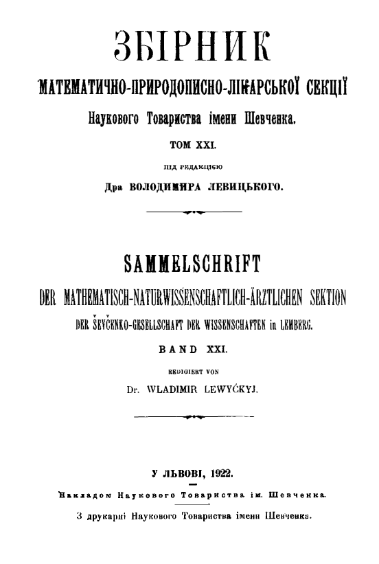 | Proceedings Book | 1922 | 2-лют-2021 | Збірник математично-природописно-лікарської секції НТШ, том XXI | - |