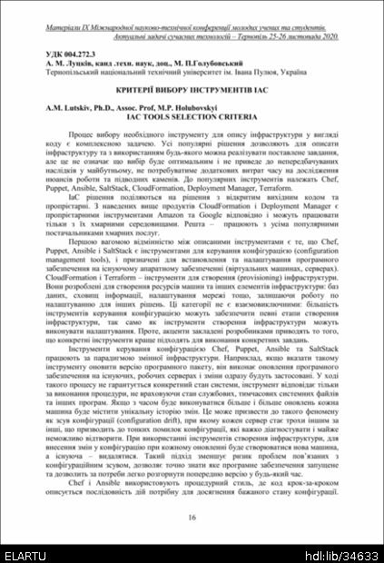 | Titolo: | Критерії вибору інструментів iac |