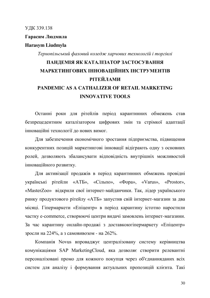 | Назва: | Пандемія як каталізатор застосування маркетингових інноваційних інструментів рітейлами |