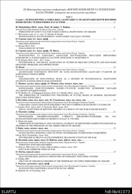 | Журнал/збірник: | Збірник тез Ⅲ Міжнародної наукової конференції „Воєнні конфлікти та техногенні катастрофи: історичні та психологічнінаслідки“ |