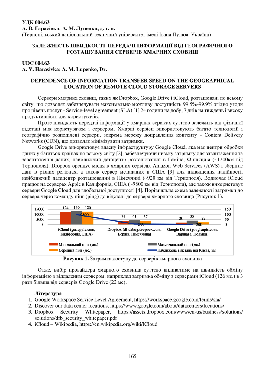 | Tittel: | Залежність швидкості передачі інформації від географічного розташування серверів хмарних сховищ |