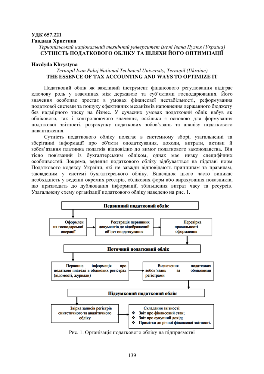 | Title: | Сутність податкового обліку та шляхи його оптимізації |
