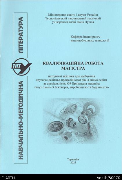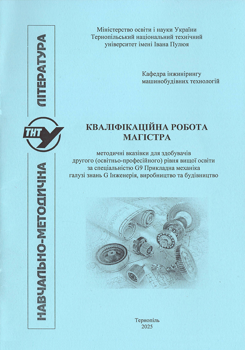 Title: | Кваліфікаційна робота магістра : методичні вказівки для здобувачів другого (освітньо-професійного) рівня вищої освіти за спеціальністю G9 Прикладна механіка галузі знань G Інженерія, виробництво та будівництво |