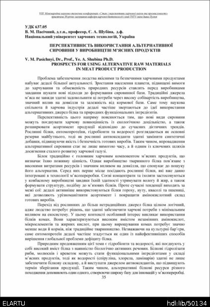 | Інші назви: | Prospects for using alternative raw materials in meat product production |