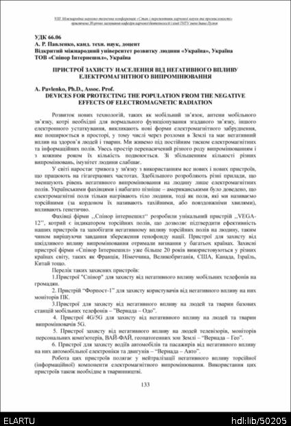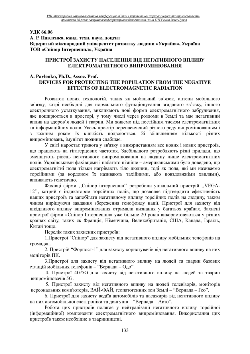| Bibliographic citation (APA): | Pavlenko, A. (2025). Prystroi zakhystu naselennia vid nehatyvnoho vplyvu elektromahnitnoho vyprominiuvannia [Devices for protecting the population from the negative effects of electromagnetic radiation]. Materials of the 8th International Scientific and Technical Conference “The State and Prospects of Food Science and Industry” dedicated to the 30th anniversary of the founding of the Department of Food Biotechnology and Chemistry at Ivan Pulʼuj Ternopil National Technical University, 25 – 26 veresnia 2025 y., Ternopil, 133. [in Ukrainian]. |
