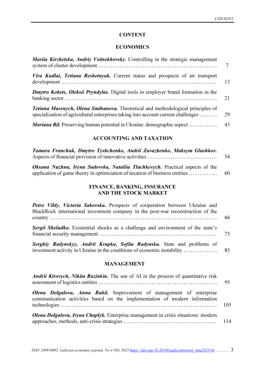 | Is part of: | Галицький економічний вісник, 4 (95), 2025 Galician economic journal, 4 (95), 2025 |