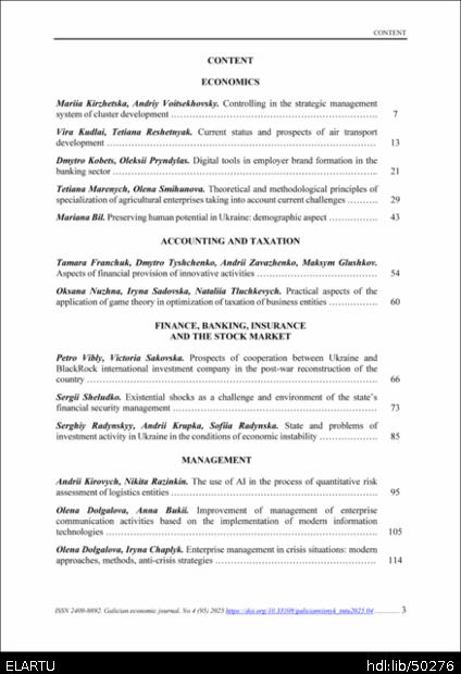 | Bibliographic citation (CHICAGO): | Zmist [Content]. Galician economic journal (Tern.), vol. 95, no 4, pp. 3-6 [in Ukrainian]. |