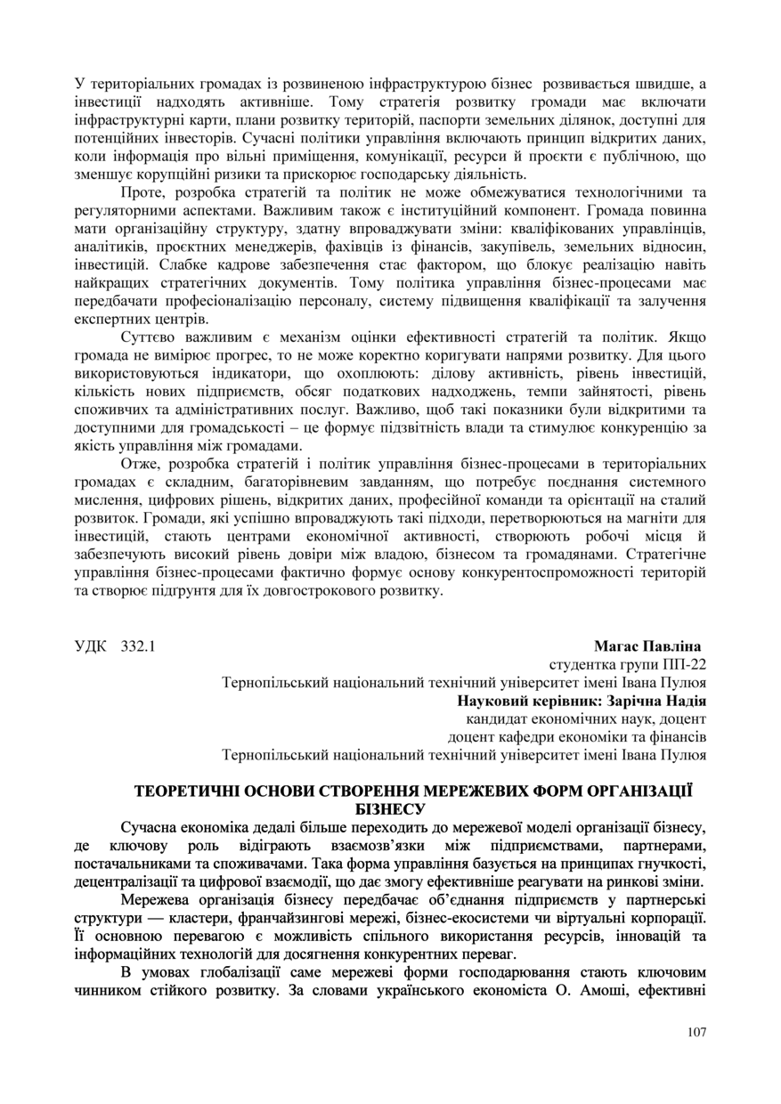 Bibliographic citation (CHICAGO): Mahas P. (2025) Teoretychni osnovy stvorennia merezhevykh form orhanizatsii biznesu. Proceedings of the 15 International Scientific-Practical Conference “Formation of the mechanism of national economic systems competitive positions strengthening in global, regional and local dimensions” (Tern., 17 November 2025), pp. 107-108 [in Ukrainian].