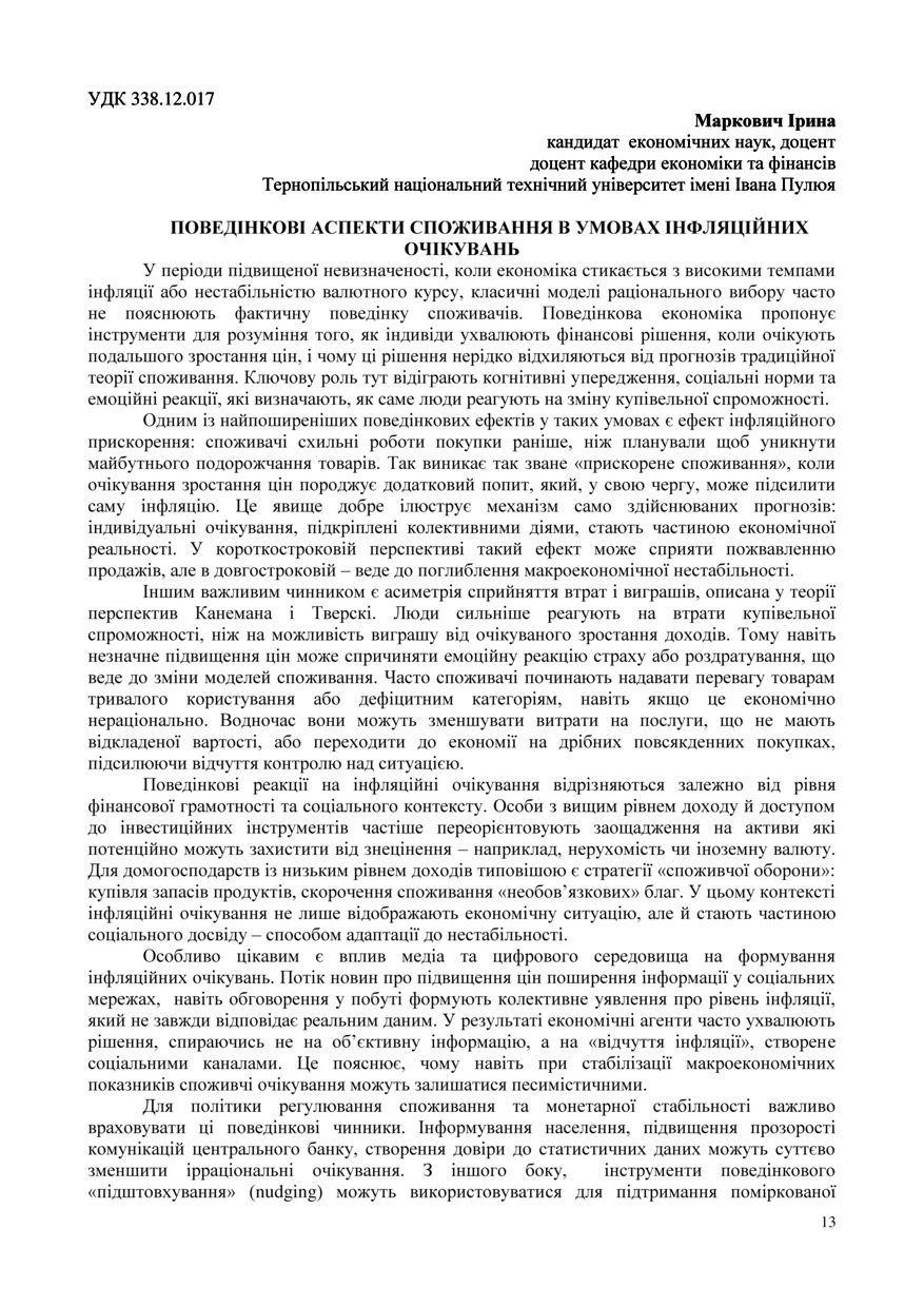 | Назва: | Поведінкові аспекти споживання в умовах інфляційних очікувань |
