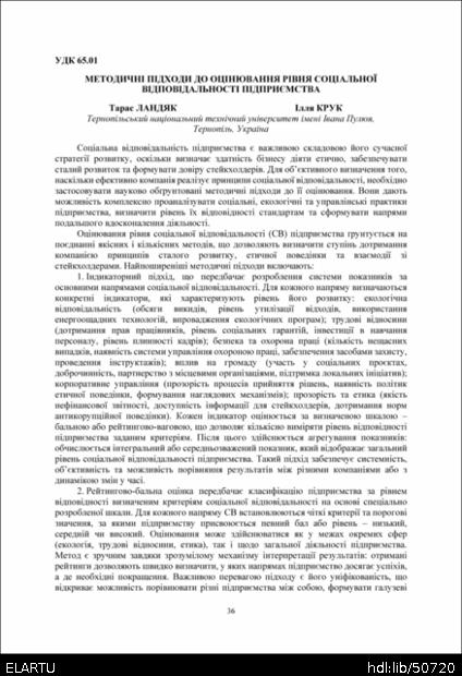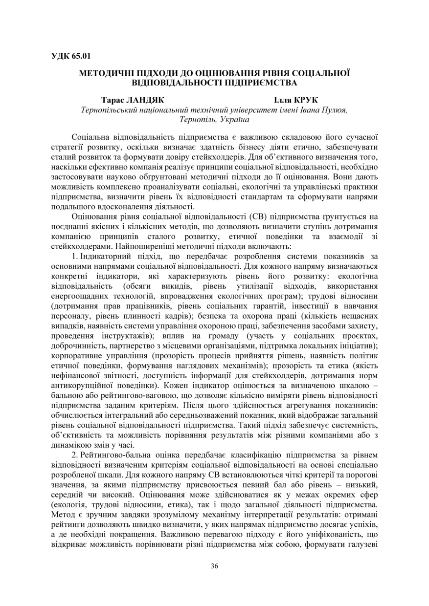| Bibliographic citation (APA): | Landiak, T., & Kruk, I. (2025). Metodychni pidkhody do otsiniuvannia rivnia sotsialnoi vidpovidalnosti pidpryiemstva. Proceeding of Ⅳ International Scientific and Practical Conference: “Business Transformation for Sustainable Future: Research, Digitalization and Innovation”, 4-5 December 2025, Ternopil, 36-37. FOP Palyanytsya V. A.. [in Ukrainian]. |