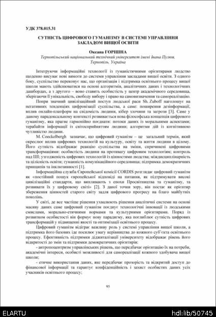 | Назва: | Сутність цифрового гуманізму в системі управління закладом вищої освіти |