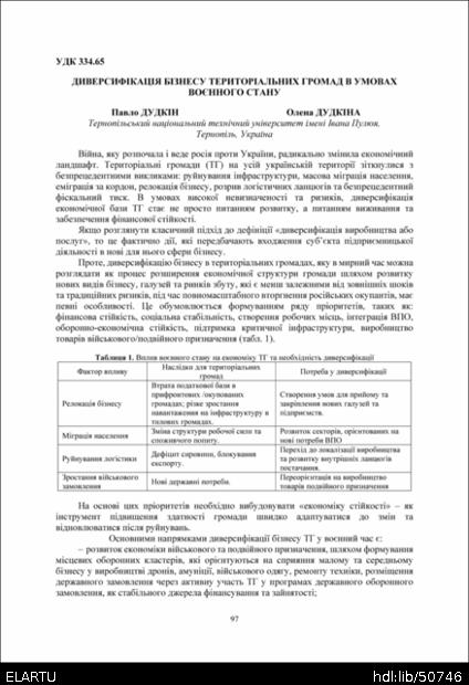 | Назва: | Диверсифікація бізнесу територіальних громад в умовах воєнного стану |