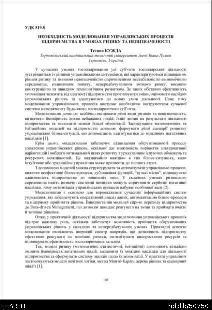 | Başlık: | Необхідність моделювання управлінських процесів підприємства в умовах ризику та невизначеності |