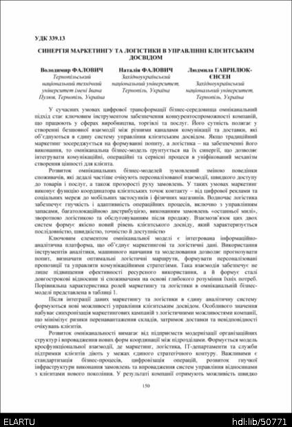 | Başlık: | Синергія маркетингу та логістики в управлінні клієнтським досвідом |