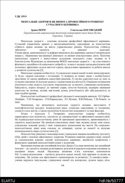 | Başlık: | Ментальне здоров’я як вимога професійного розвитку сучасного керівника |