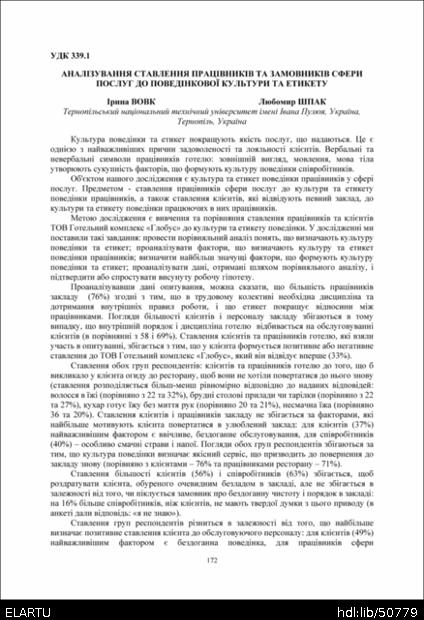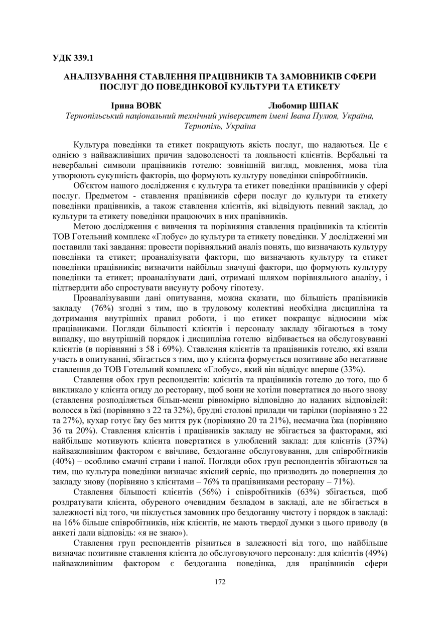 | Bibliographic citation (APA): | Vovk, I., & Shpak, L. (2025). Analizuvannia stavlennia pratsivnykiv ta zamovnykiv sfery posluh do povedinkovoi kultury ta etyketu. Proceeding of Ⅳ International Scientific and Practical Conference: “Business Transformation for Sustainable Future: Research, Digitalization and Innovation”, 4-5 December 2025, Ternopil, 172-173. FOP Palyanytsya V. A.. [in Ukrainian]. |