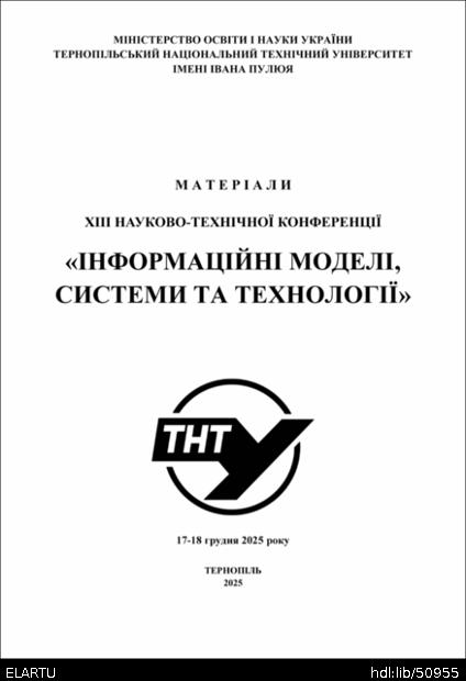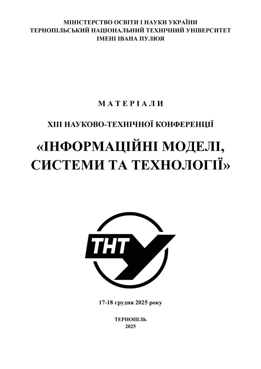 Bibliographic citation (CHICAGO): Titul [Title]. Materials of the ⅩⅢ Scientific and Technical Conference “Information Models, Systems, and Technologies” (Tern., 17-18 December 2025), pp. 1-2 [in Ukrainian].