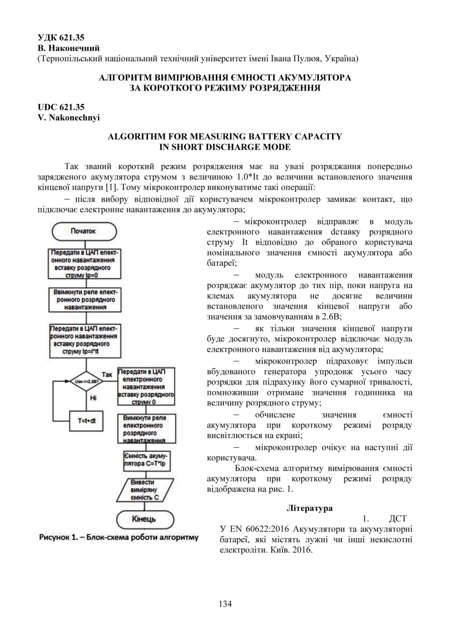 Bibliographic citation (APA): Nakonechnyi, V. (2025). Alhorytm vymiriuvannia yemnosti akumuliatora za korotkoho rezhymu rozriadzhennia [Algorithm for measuring battery capacity in short discharge mode]. Materials of the ⅩⅢ Scientific and Technical Conference “Information Models, Systems, and Technologies”, 17-18 December 2025, Ternopil, 134. TNTU. [in Ukrainian].