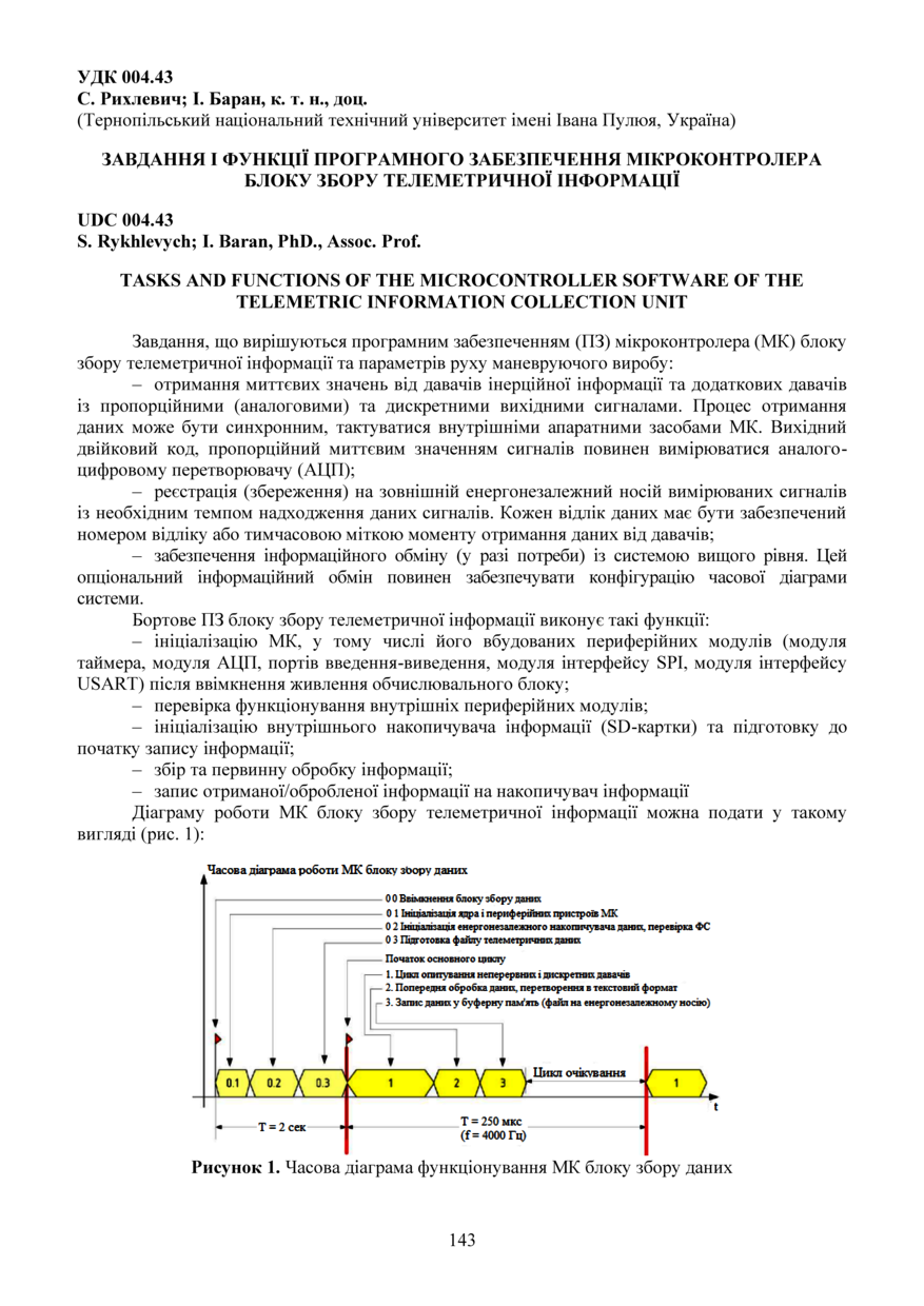 | Bibliographic citation (APA): | Rykhlevych, S., & Baran, I. (2025). Zavdannia i funktsii prohramnoho zabezpechennia mikrokontrolera bloku zboru telemetrychnoi informatsii [Tasks and functions of the microcontroller software of the telemetric information collection unit]. Materials of the ⅩⅢ Scientific and Technical Conference “Information Models, Systems, and Technologies”, 17-18 December 2025, Ternopil, 143. TNTU. [in Ukrainian]. |