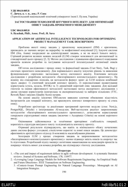 | Інші назви: | Application of artificial intelligence technologies for optimizing project management task descriptions |