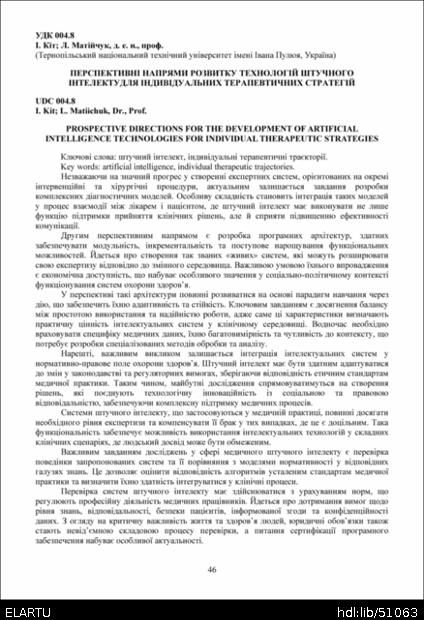Títol: Перспективні напрями розвитку технологій штучного інтелекту для індивідуальних терапевтичних стратегій