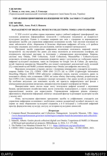 | Títol: | Управління цифровими колекціями музеїв: засоби і стандарти |