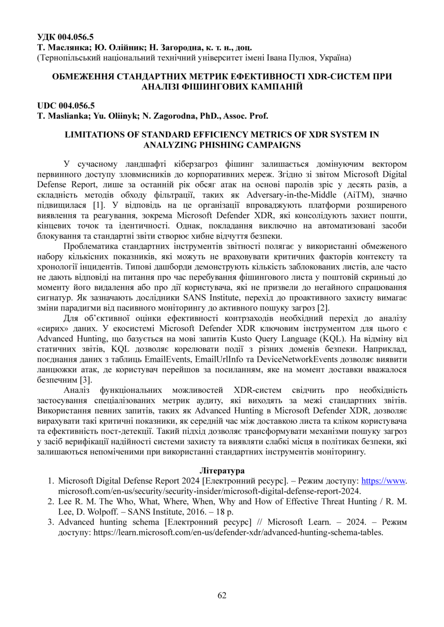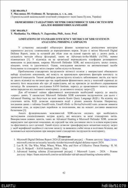 | Títol: | Обмеження стандартних метрик ефективності xdr-систем при аналізі фішингових кампаній |