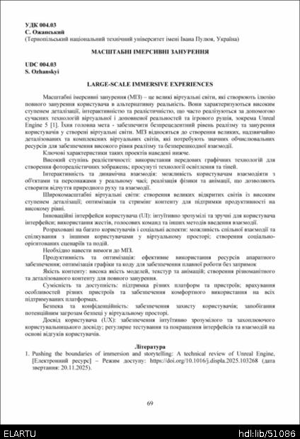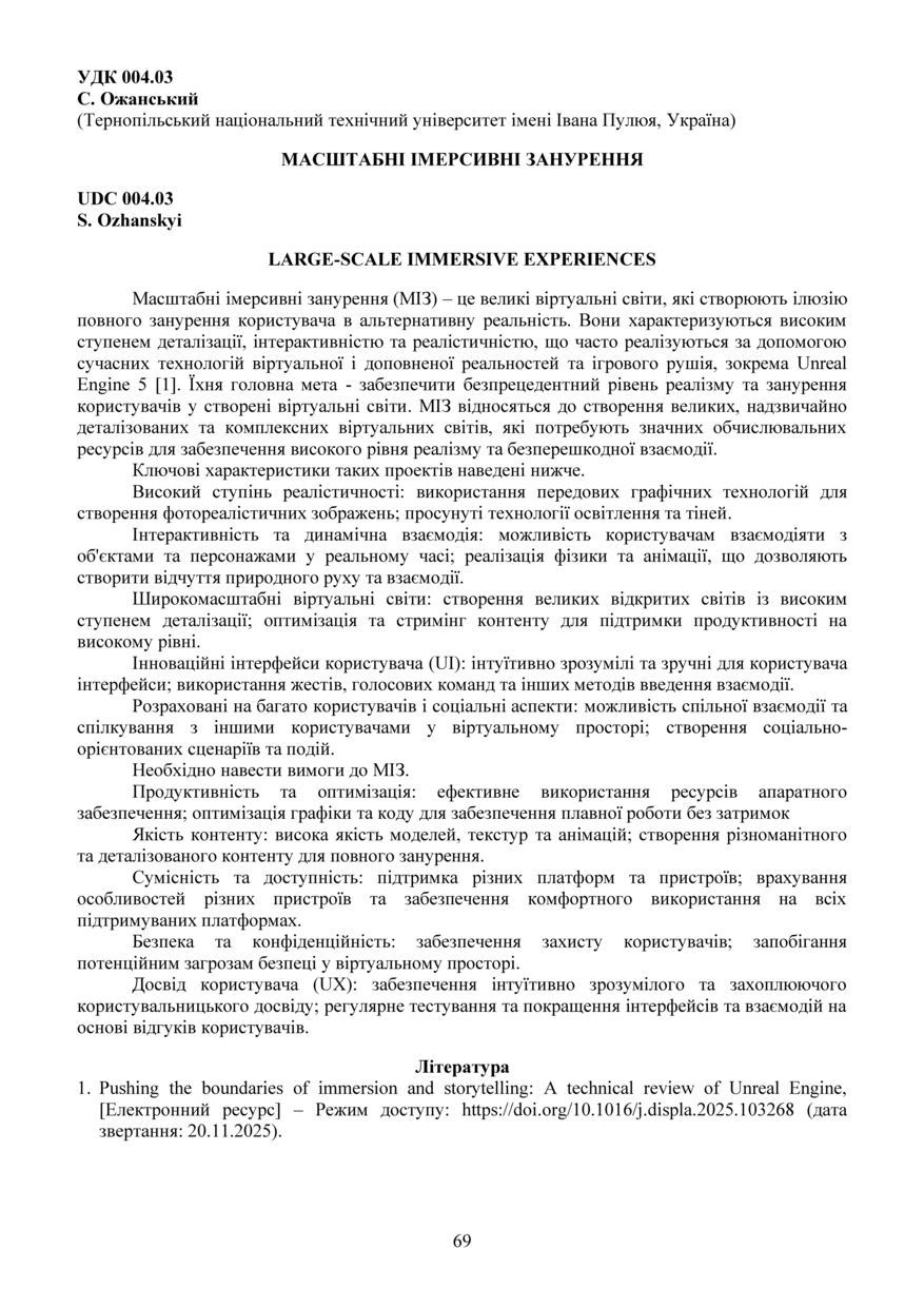 References (Ukraine): 1. Pushing the boundaries of immersion and storytelling: A technical review of Unreal Engine, [Електронний ресурс] – Режим доступу: https://doi.org/10.1016/j.displa.2025.103268 (дата звертання: 20.11.2025).
