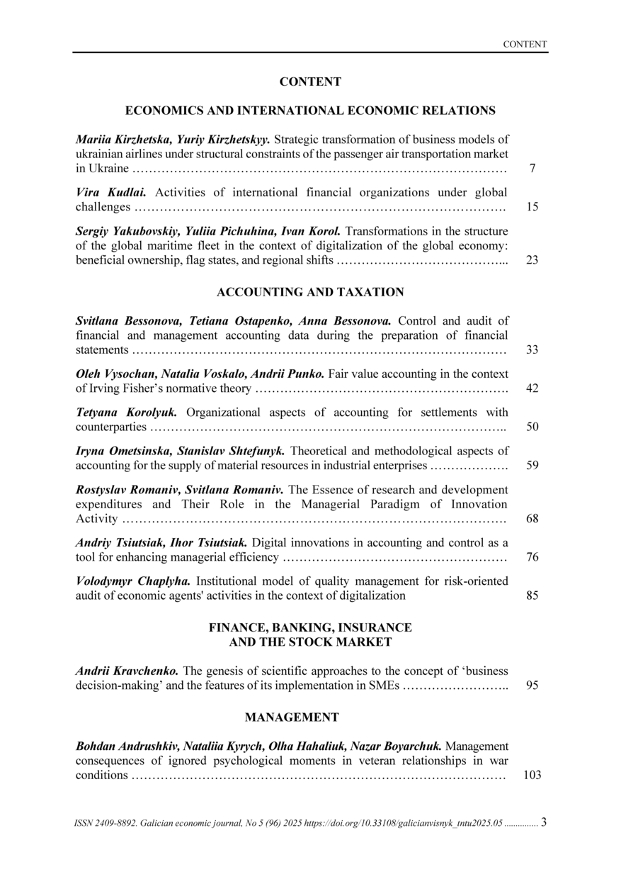 | Bibliographic citation (CHICAGO): | Zmist [Content]. Galician economic journal (Tern.), vol. 96, no 5, pp. 3-6 [in Ukrainian]. |