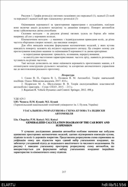 Bibliographic description (Ukraine): Чепига І. Ю. Узагальнена розрахункова схема кузова та підвіски автомобіля / І. Ю. Чепига, П. М. Куций, М. І. Куций // Матеріали ⅩⅣ МНТКМУС „Актуальні задачі сучасних технологій“, 11-12 грудня 2025. — Т. : ФОП Паляниця В.А., 2025. — С. 217–218. — (Сучасні технології на транспорті).