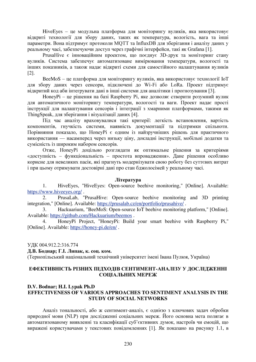 | Bibliographic citation (APA): | Bodnar, D. V., & Lypak, H. I. (2025). Efektyvnist riznykh pidkhodiv sentyment-analizu u doslidzhenni sotsialnykh merezh [Effectiveness of various approaches to sentiment analysis in the study of social networks]. Proceedings of the ⅩⅣ International Scientific and Technical Conference of Young Scientists and Students “Current Issues of Modern Technologies”, 11-12 December 2025, Ternopil, 230-232. PE Palianytsia V.A.. [in Ukrainian]. |