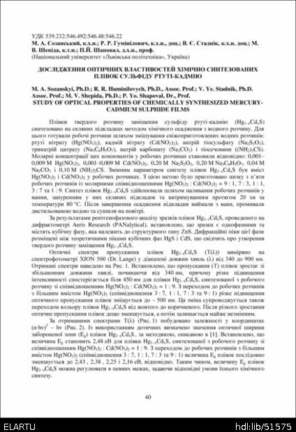 | Інші назви: | Study of optical properties of chemically synthesized mercury-cadmium sulphide films |