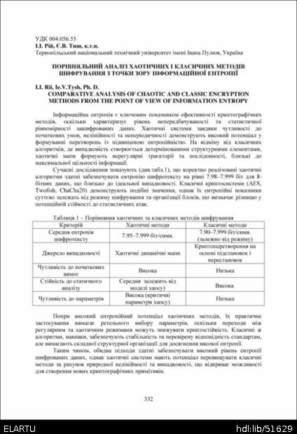 | Títol: | Порівняльний аналіз хаотичних і класичних методів шифрування з точки зору інформаційної ентропії |