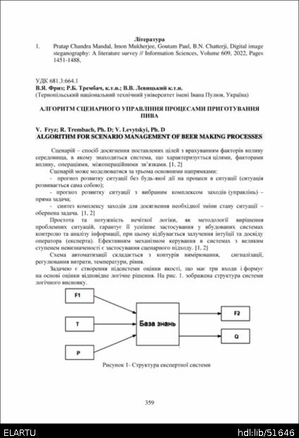 References: 1. Romanov M.S., Kyshenko V.D., Ladaniuk A.P Rozrobka systemy stsenarnoho upravlinnia tekhnolohichnymy protsesamy pryhotuvannia pyva. Skhidnoievropeiskyi zhurnal peredovykh tekhnolohii. 2015. No 2(3). P. 49-55. URL: http://nbuv.gov.ua/UJRN/Vejpte_2015_2%283%29__9