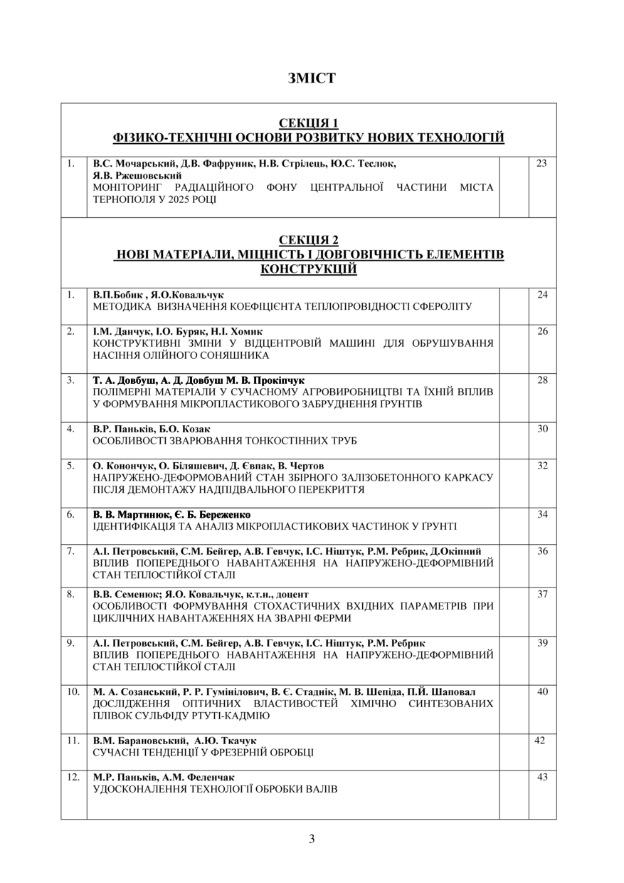 | Bibliographic citation (CHICAGO): | Zmist [Content]. Proceedings of the ⅩⅣ International Scientific and Technical Conference of Young Scientists and Students “Current Issues of Modern Technologies” (Tern., 11-12 December 2025), pp. 3-22 [in Ukrainian]. |