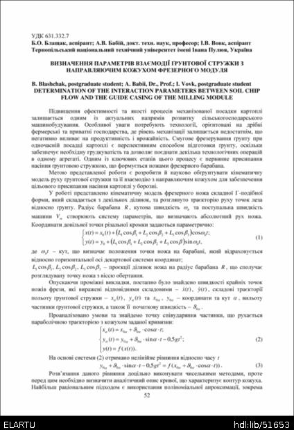 Інші назви: Determination of the interaction parameters between soil chip flow and the guide casing of the milling module