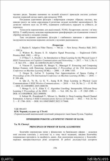 | Bibliographic reference (2015): | Чорний Я. М. Принципи роботи алгоритму Proof of Rank // Матеріали ⅩⅣ МНТКМУС „Актуальні задачі сучасних технологій“, Тернопіль, 11-12 грудня 2025. 2025. С. 370–372. |